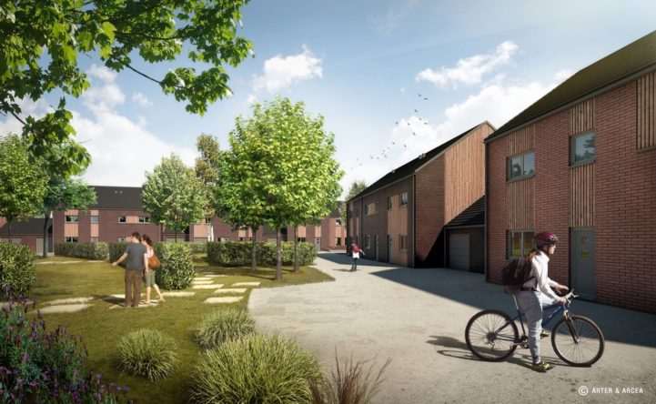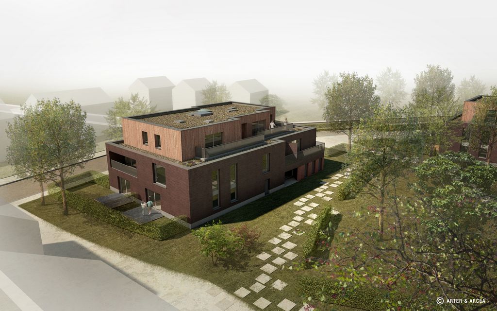 The project is a residential district with two apartment buildings with 11 apartments each and 16 Zero Energy houses surrounding a commong green area.